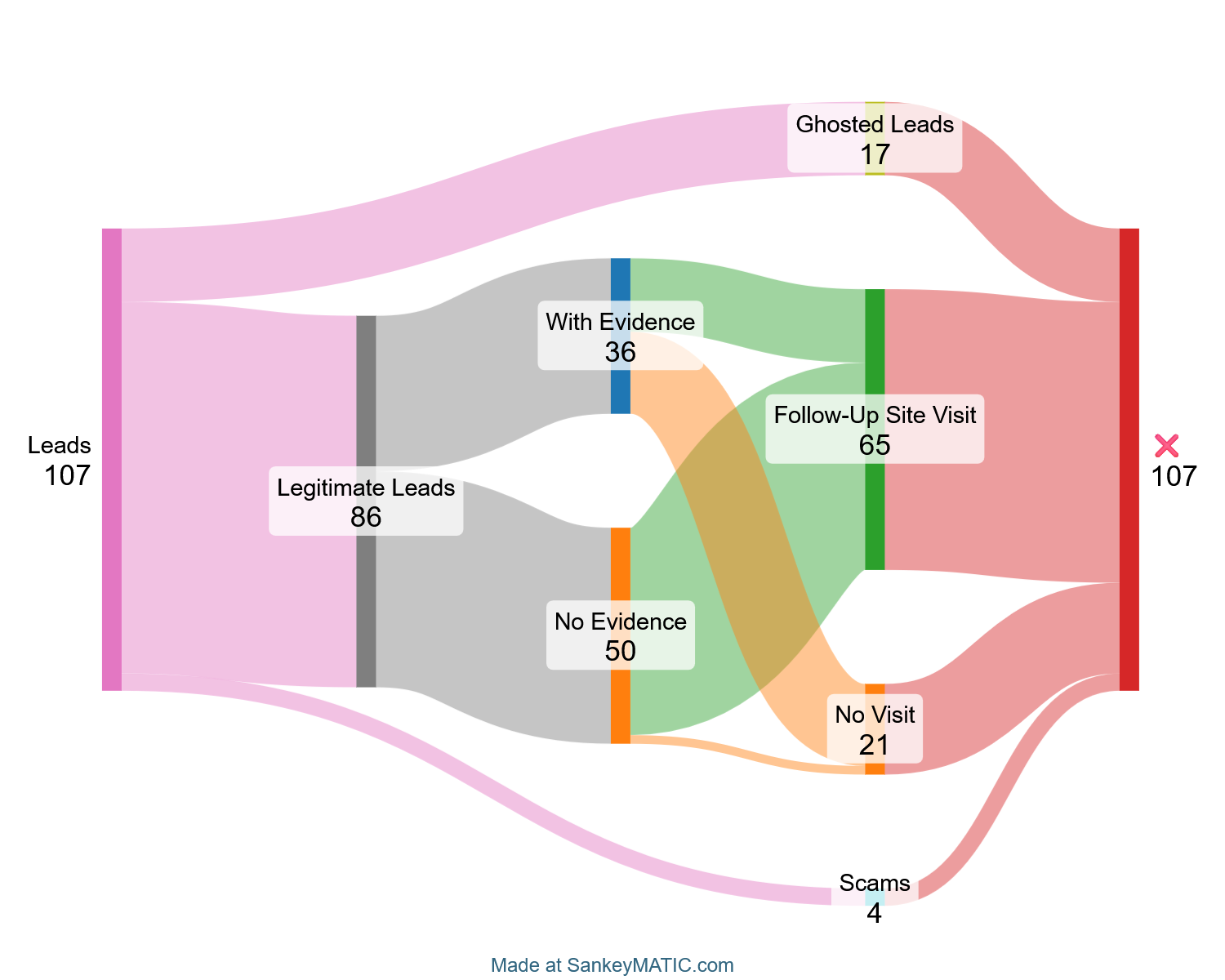 - 21 leads not visited due to clear evidence of the cat not actually being my cat. 1 one of them was a dog
